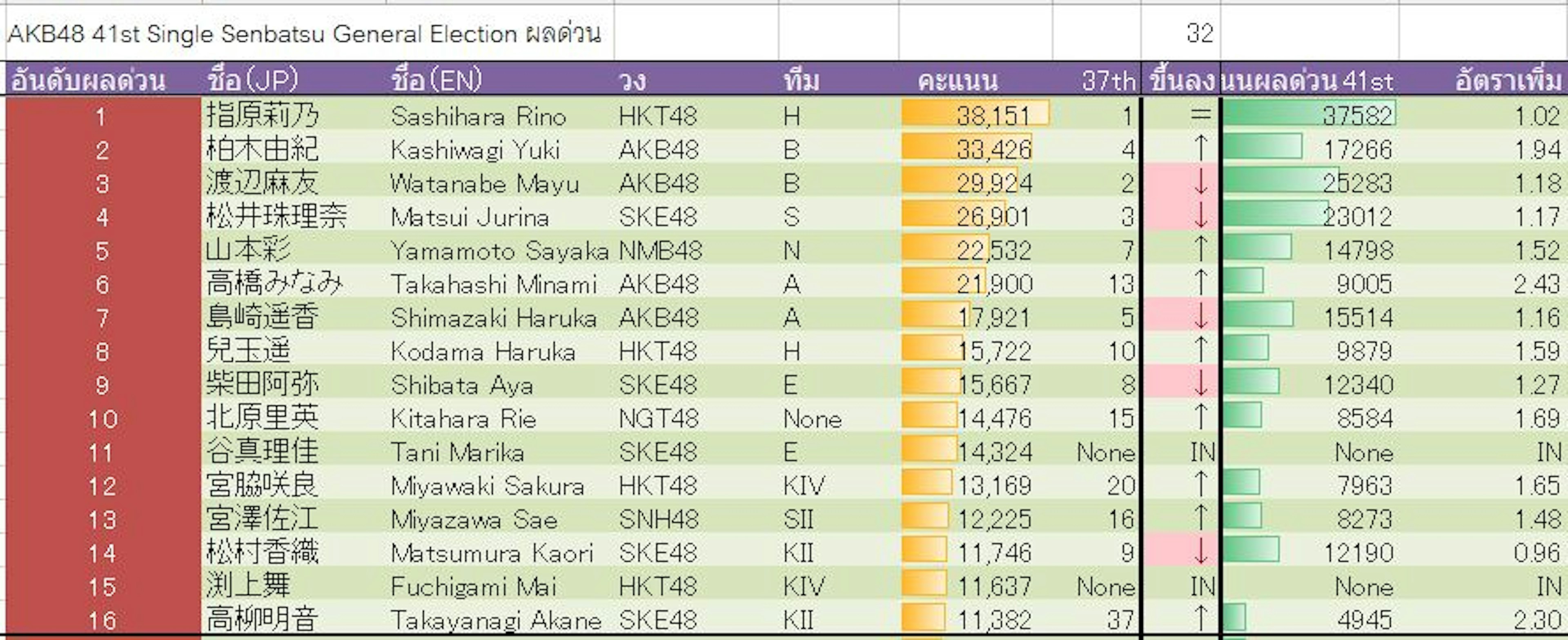 AKB48 41st Single Senbatsu เปรียบเทียบคะแนนผลด่วน