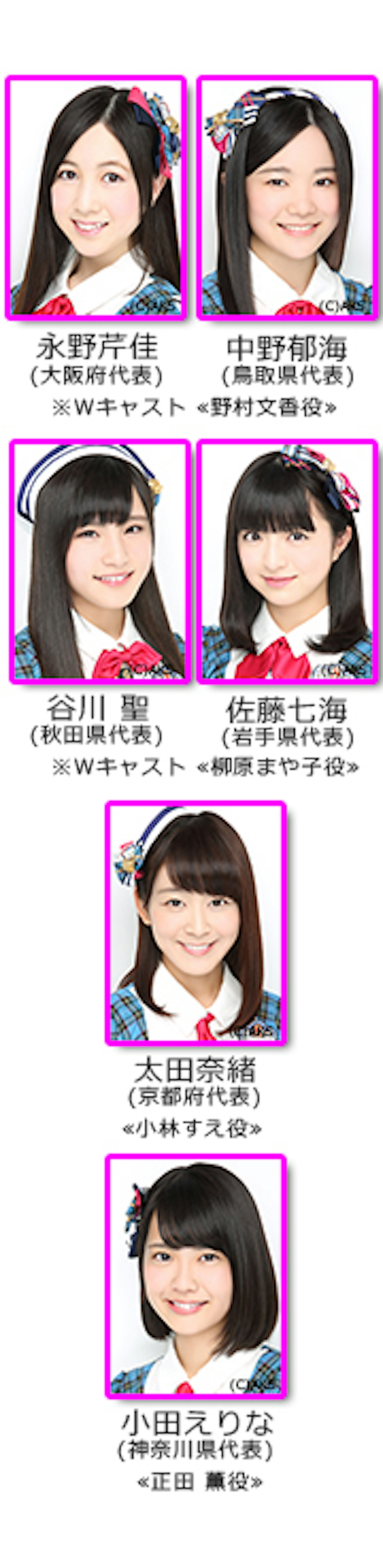 - โนมุระ ฟุมิกะ แสดงโดย นางาโนะ เซริกะ (จ.โอซาก้า) และ นากาโนะ อิคุมิ (จ.ทตโตริ) double cast แสดงสลับกัน