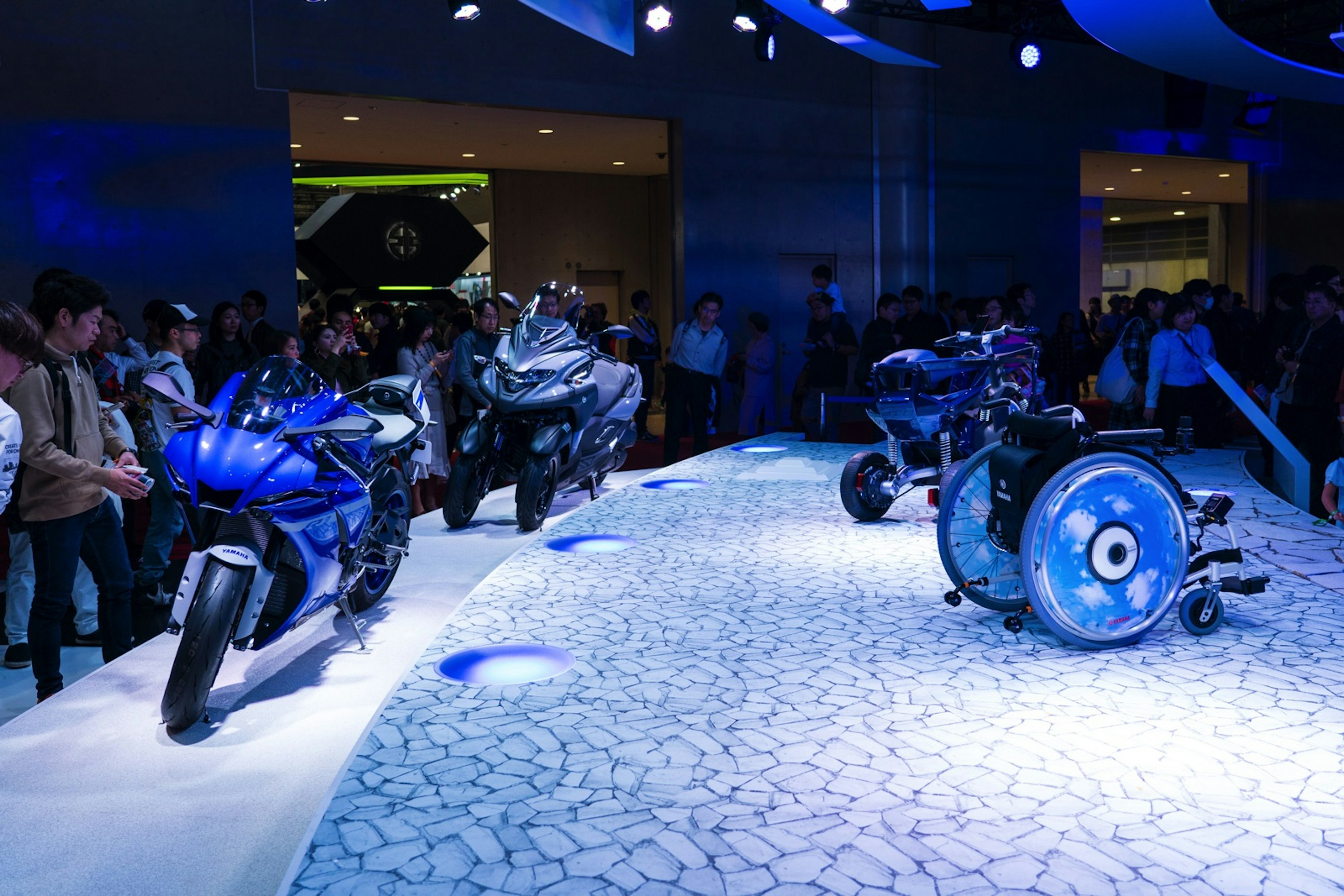 Yamaha มากับมอเตอร์ไซค์ล้วนๆ คอนเซ็ปต์คือ ART for Human Possibilities ศิลปะเพื่อขยายความสามารถของมนุษย์ ก็น่าจะหมายถึงมอเตอร์ไซค์และ wheelchair ของผู้สูงอายุที่จัดโชว์อยู่นั่นเอง