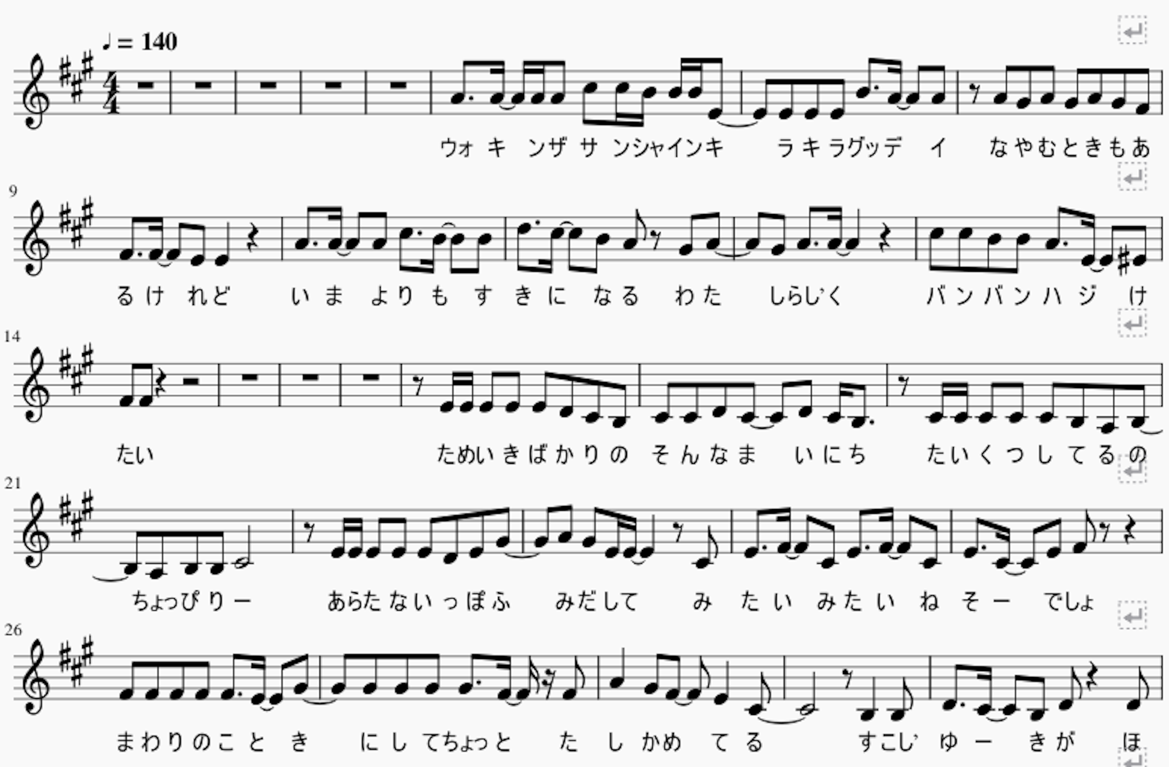 - ใส่โน้ตเพลงภาษาญี่ปุ่นลงไป