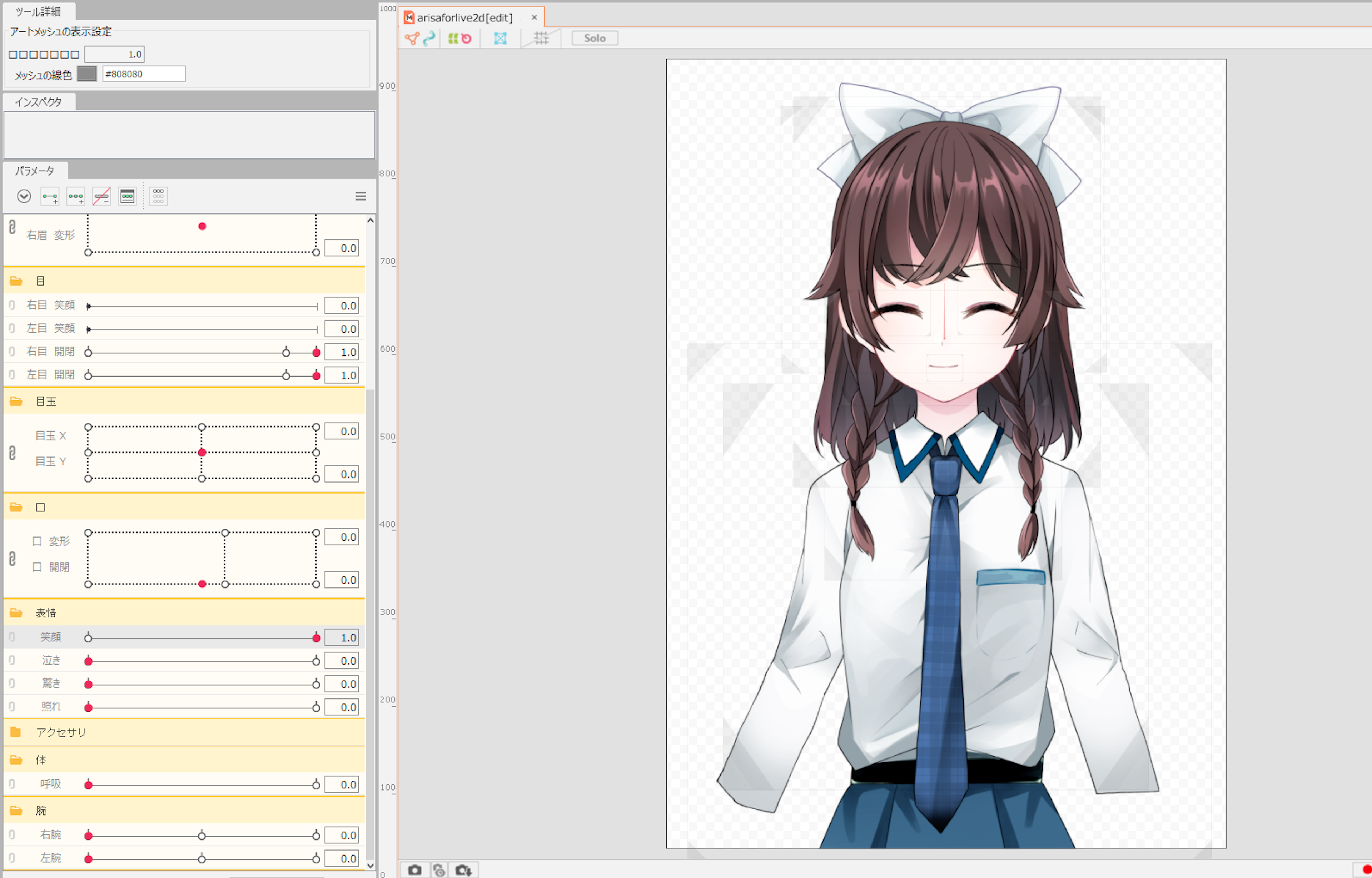 ซอฟต์แวร์ทำโมเดล 2D ที่ขยับได้จากภาพวาด โมเดลอาริสานี้นักวาดวาดเอง และ Rig (ทำโมเดลให้ขยับได้) ด้วยตัวเองทั้งหมด ส่วนผมที่เป็นฝ่ายเทคนิคก็นำมาปรับแก้ Parameter ต่อให้นำไปขยับในโปรแกรม FaceRig ได้