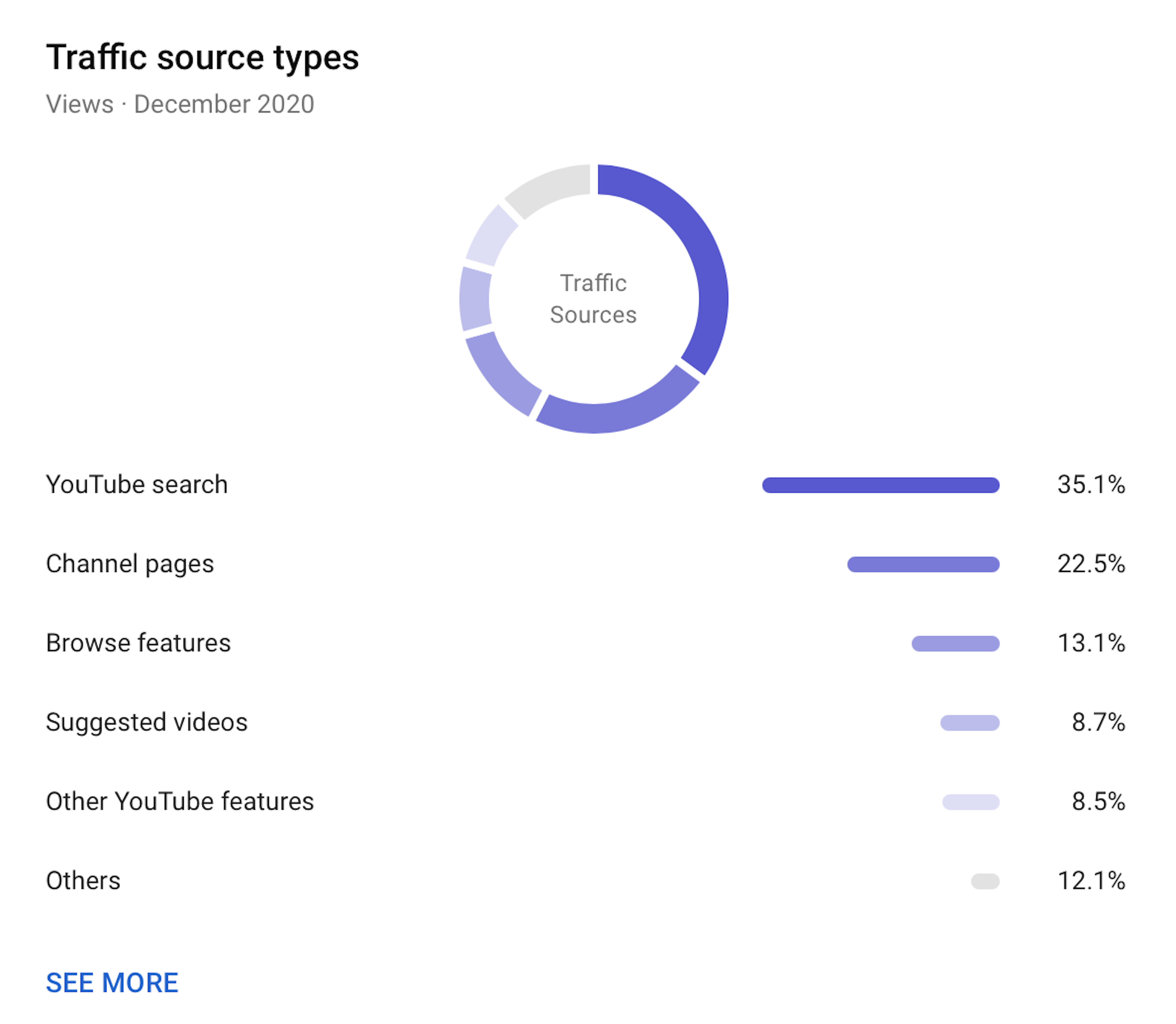 - ทราฟฟิกหลักมาจาก YouTube suggestion และ External (ลิงค์จาก Facebook)