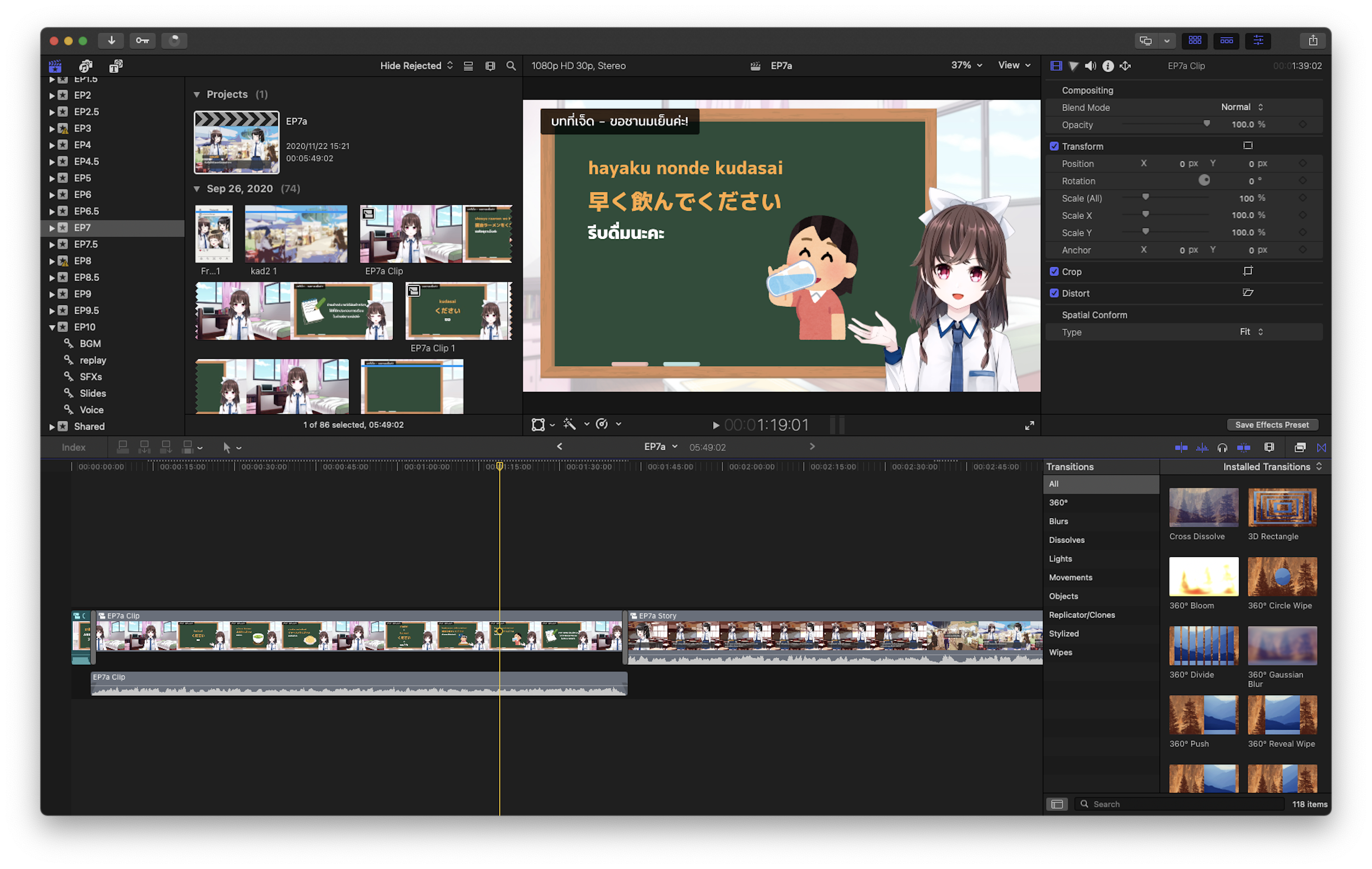 สไลด์ทั้งหมดในแต่ละตอน ผม Export ออกมาเป็นไฟล์ภาพแล้วนำไปเรียงใน Final Cut Pro X