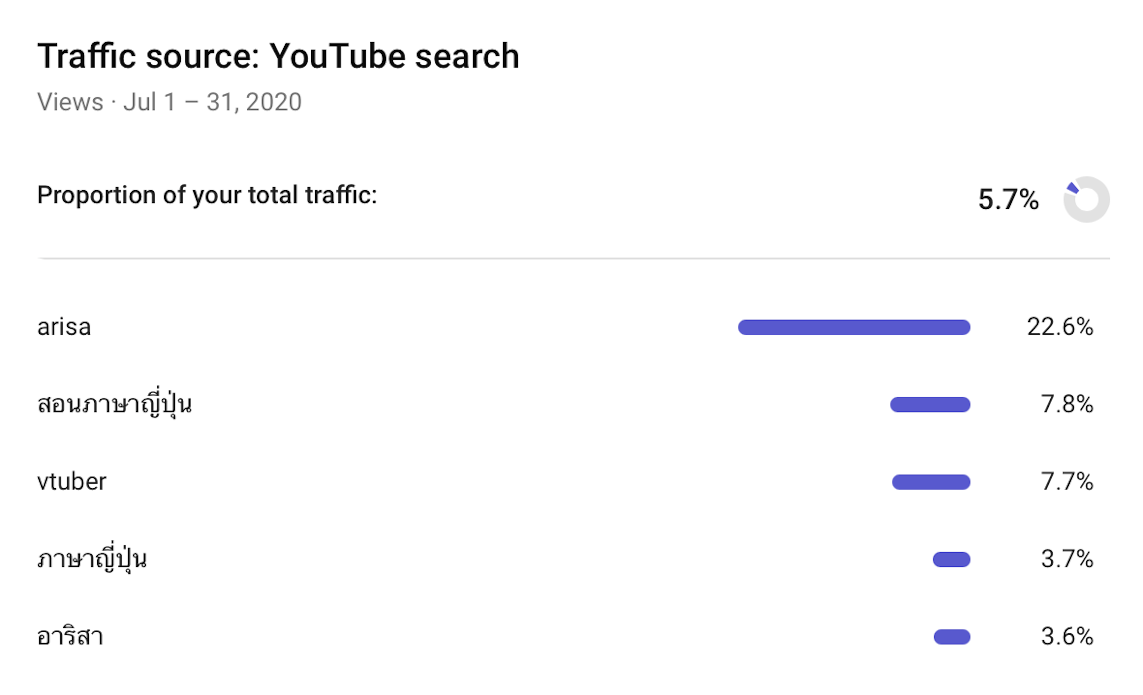 - เซิร์ชคีย์เวิร์ดอันดับหนึ่งคือ arisa เดาได้ว่ามาจากกลุ่มคนที่ชอบ VTuber เซิร์ชหา