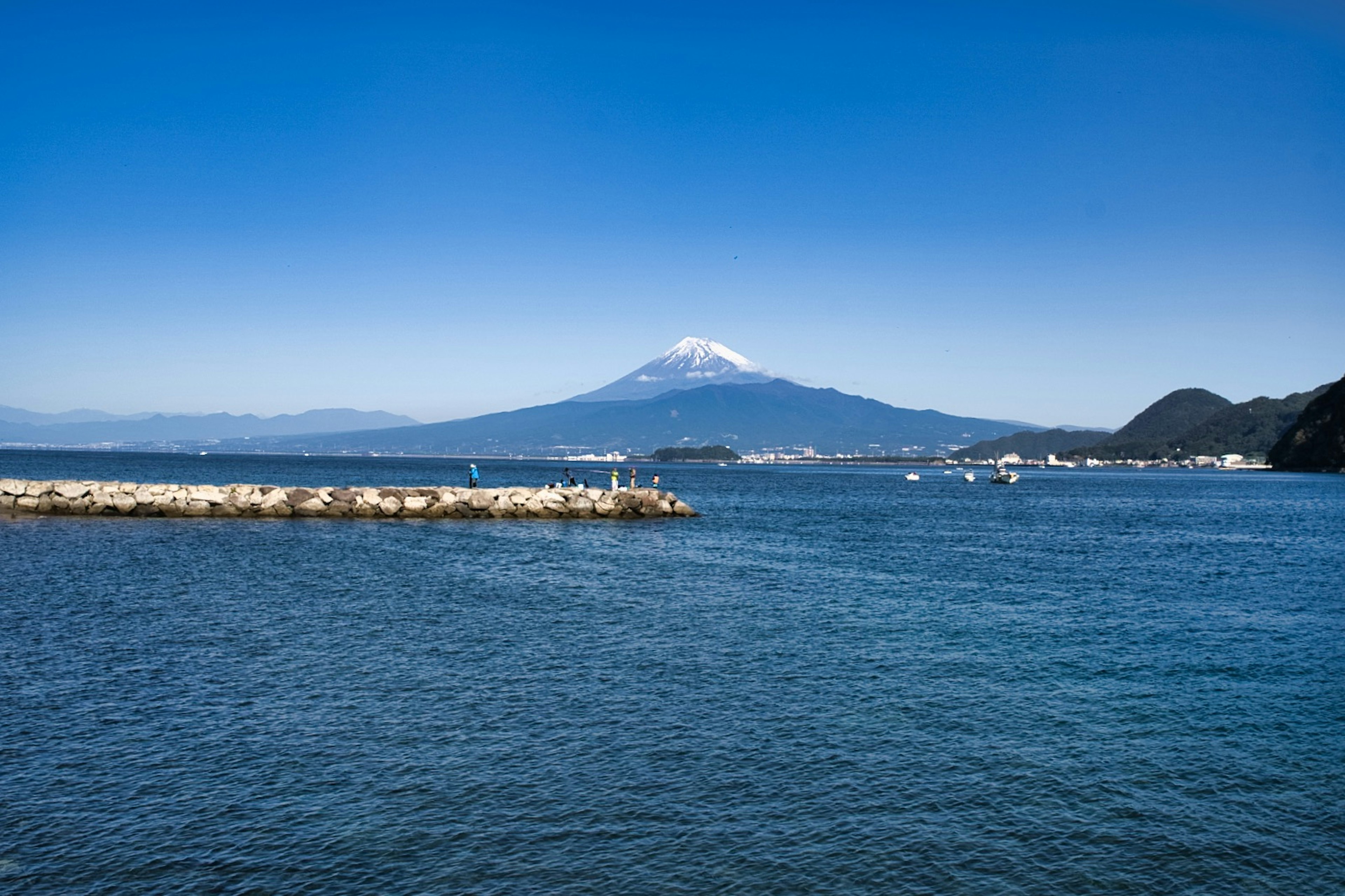 ภูเขาไฟฟูจิกับอ่าว Suruga วิวจากป้ายบัส Nagaisaki Junior High School